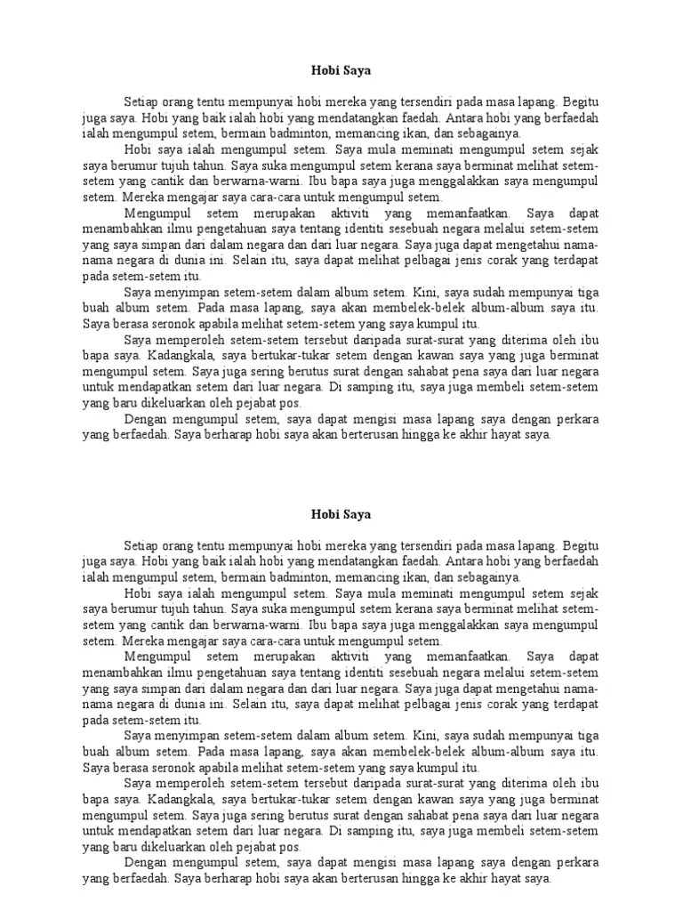 Saya juga selalu mewakili sekolah . Formula membina pendahuluan karangan menarik (mahani style). Setem, membaca buku, memancing, melukis dan sebagainya. Hobi saya hobi merupakan aktiviti yang dilakukan pada waktu lapang.